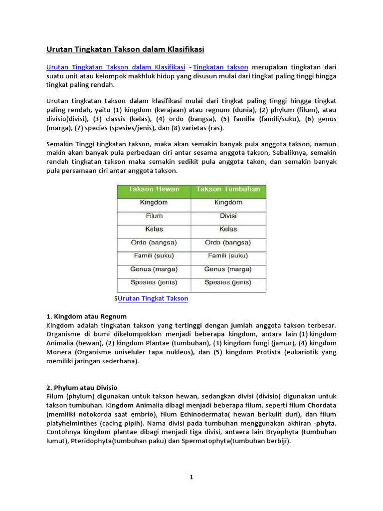 Urutan Tingkatan Takson Dalam Klasifikasi Tingkatan Takson Pdf