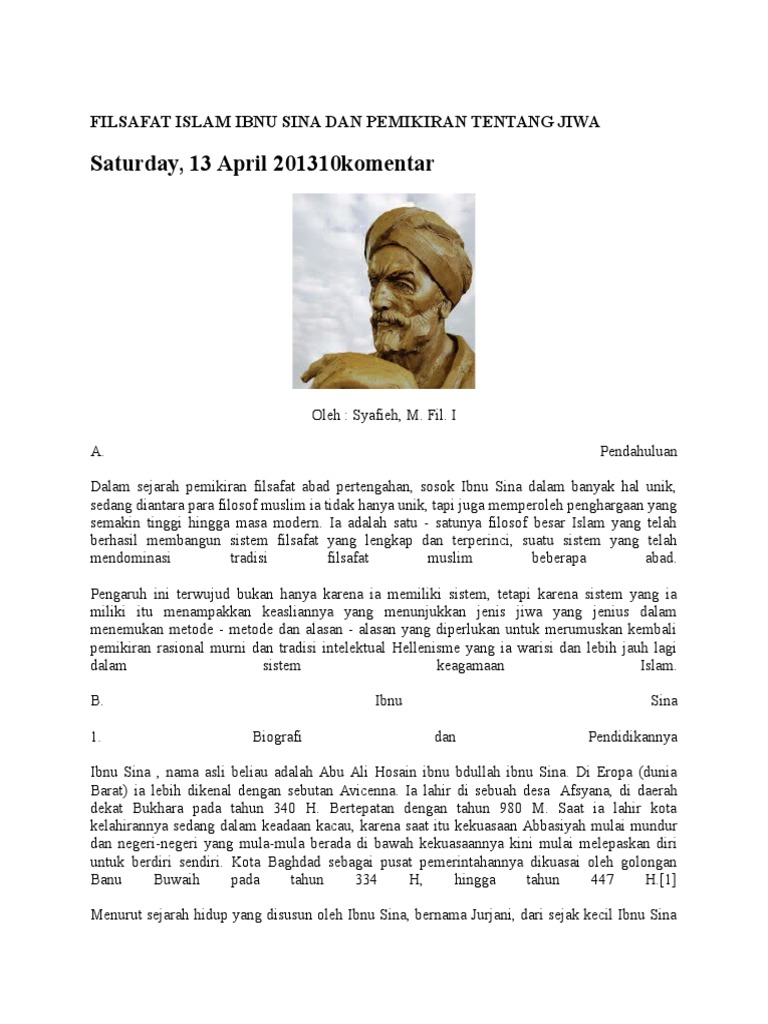 Filsafat Islam Ibnu Sina Dan Pemikiran Tentang Jiwa Pdf