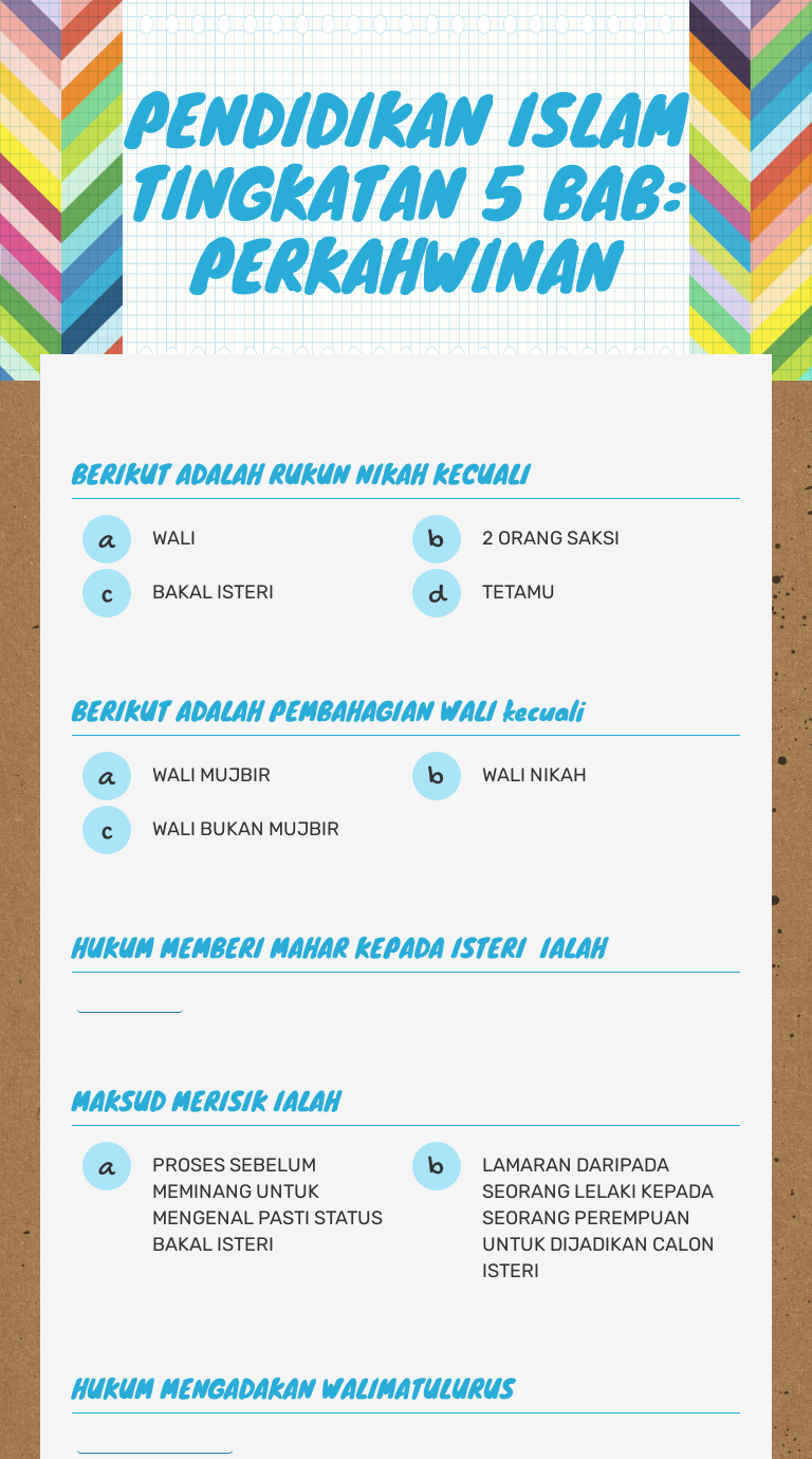 Pendidikan Islam Tingkatan 5 Bab Perkahwinan Interactive Worksheet By Ummul Aiman Wizer Me